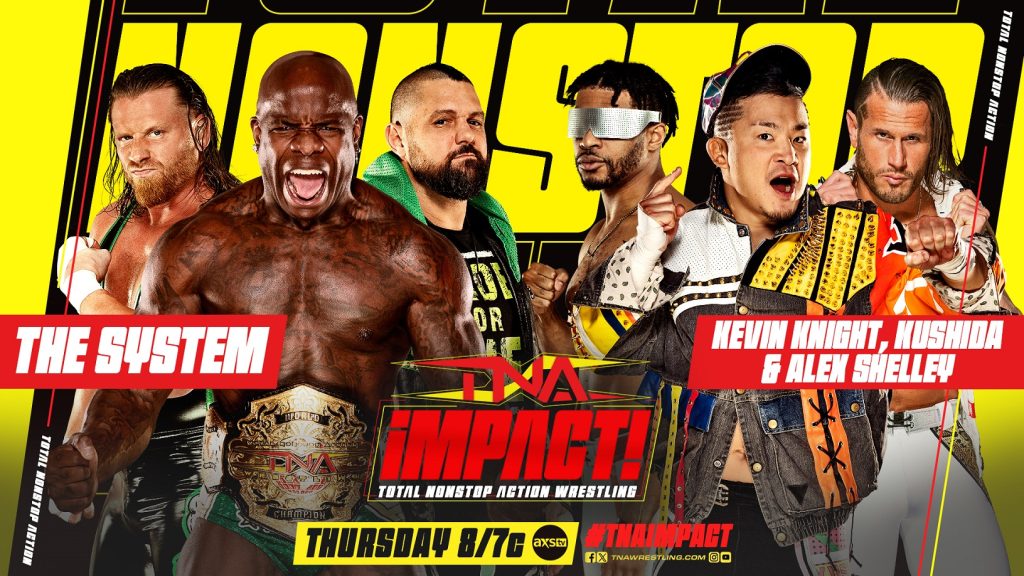 The System (TNA World Champion Moose, Brian Myers & Eddie Edwards) w/ Alisha Edwards vs. Alex Shelley, KUSHIDA & Kevin Knight