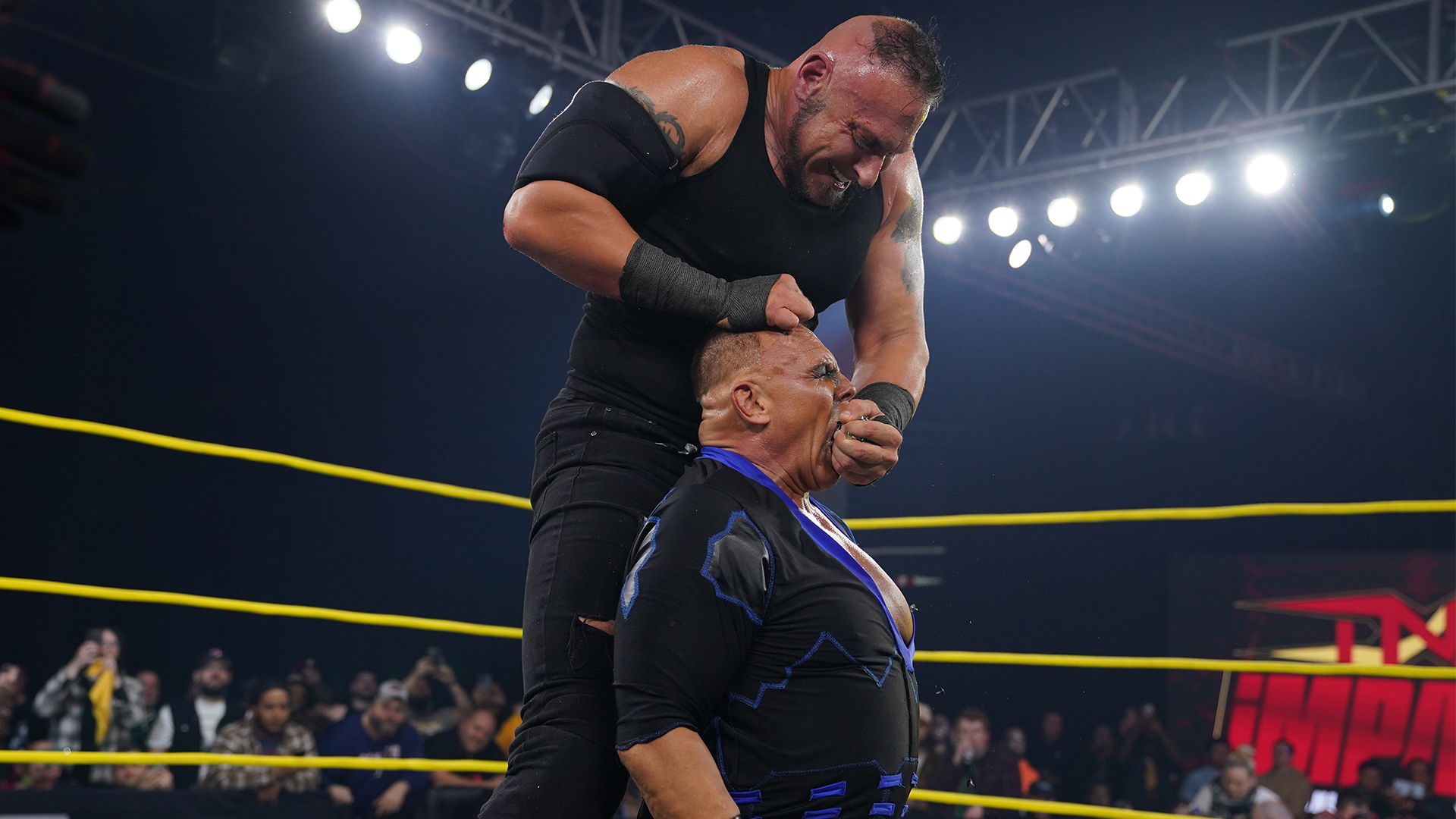After the match, Mustafa Ali has started a protest of Jake Something competing in the X-Division. Ali claims that the X-Division needs limits and Something is not within them. Something soars over the top rope, crashing into the group of protesters. Something is about to punish Ali when he’s blindsided by GYV with Grit Your Teeth. Deaner brings the fight to GYV but Ali blasts him with the X-Division Title before doing the same to Something.