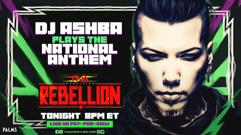 DJ Ashba is coming to TNA Wrestling’s spring pay-per-view extravaganza, Rebellion, LIVE this Saturday from the Palms Casino Resort in Las Vegas! Ashba, guitarist formerly of Guns N’ Roses and Sixx:A.M, will perform the national anthem to kick off the event.