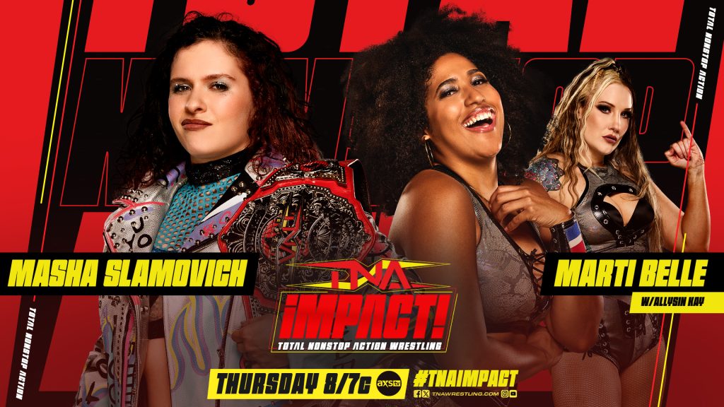 Marti Belle and Allysin Kay have made a significant impact since their return to TNA Wrestling. Last week, Marti Belle faced Jordynne Grace on TNA iMPACT. Now, she takes on Masha Slamovich, one half of the Knockouts Tag Team Champions. Will Masha Slamovich prove to be the formidable opponent she’s known to be, or will Marti Belle outsmart her with Allysin Kay at ringside? Find out this Thursday on TNA iMPACT!