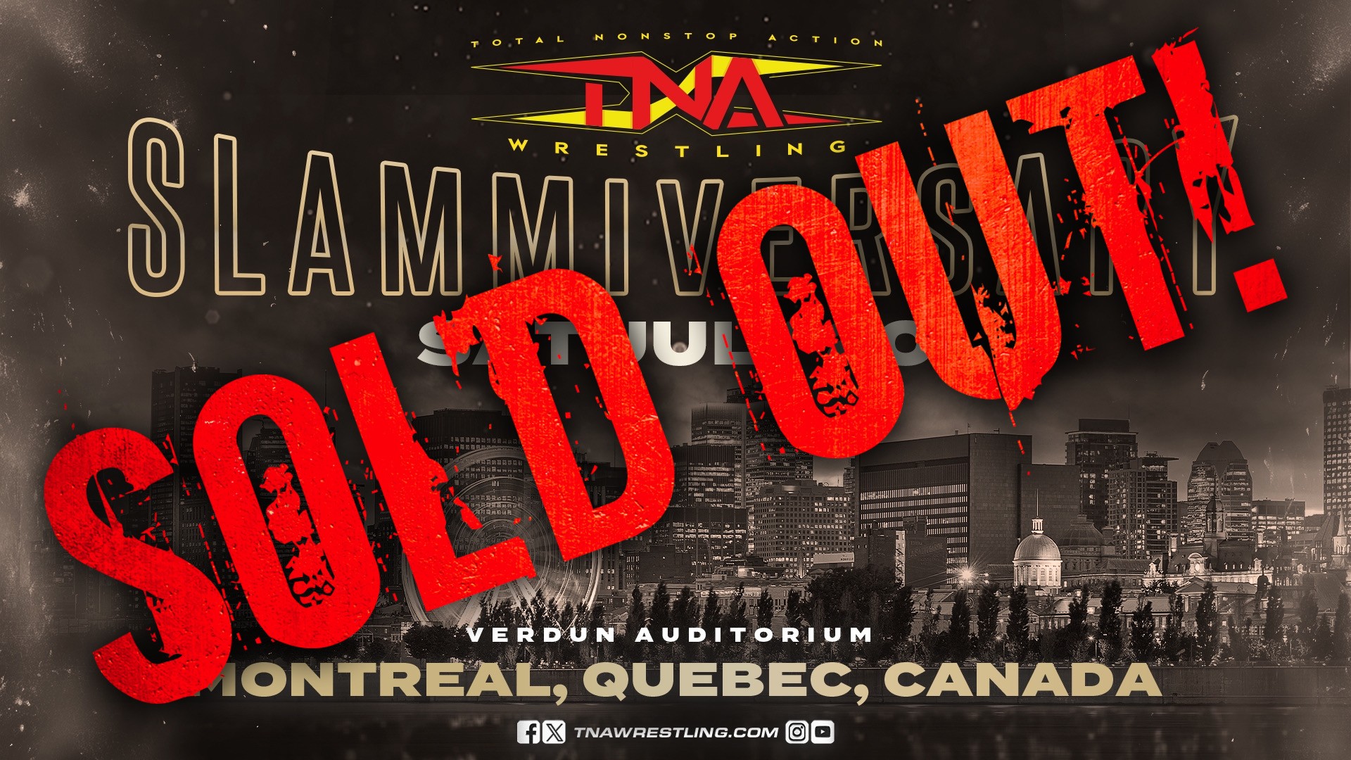 BREAKING: #TNASlammiversary LIVE THIS SATURDAY from the Verdun Auditorium in Montreal, QC is SOLD OUT! The only way to witness this historic event is to order the PPV.