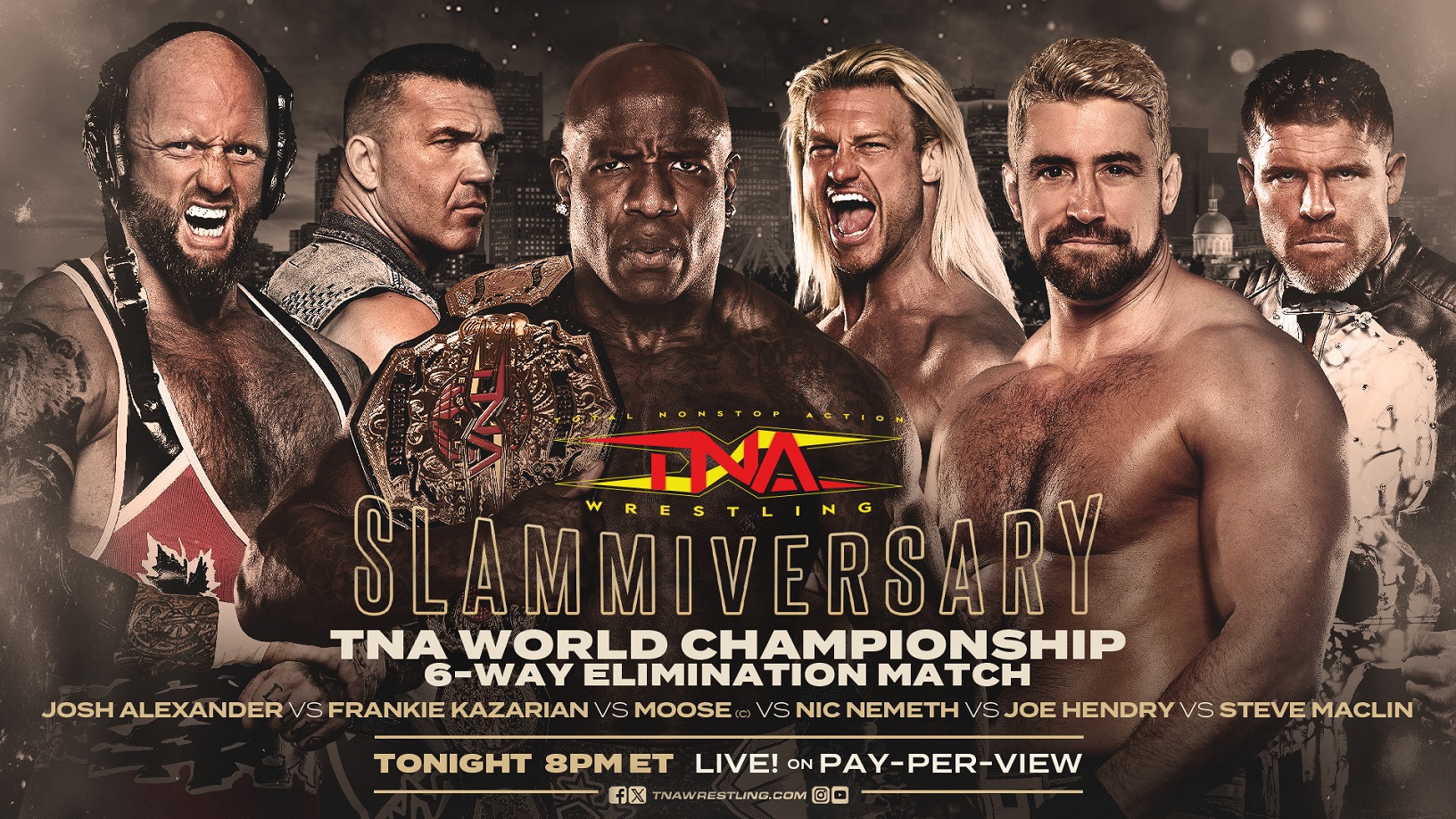 LIVE TONIGHT at 8pm ET, TNA Wrestling returns to Montreal, Quebec, Canada for the first time since 2011 with its 20th Slammiversary pay-per-view event, taking place from a SOLD OUT Verdun Auditorium!