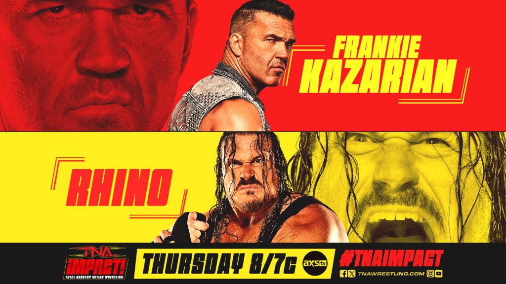 Last week, Frankie Kazarian was running his mouth as usual, but the “Man Beast” Rhino had heard enough! Rhino has vowed to shut Frankie up for good. Will the self-proclaimed “King of TNA” fall victim to the GORE? Tune in on @AXSTV and TNA+ at 8/7c to find out!