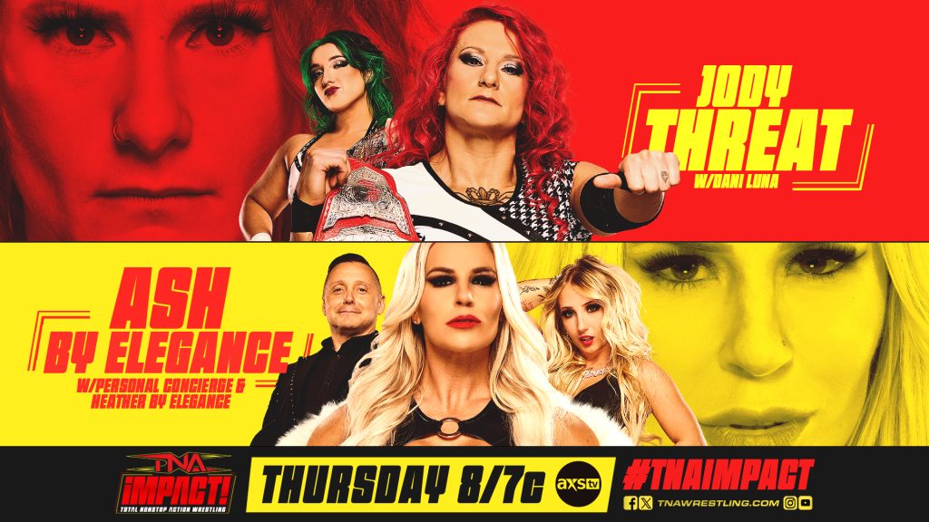 The rivalry between Spitfire and Ash & Heather By Elegance rages on! This week, Jody Threat, one-half of the Knockouts Tag Team Champions, takes on Ash By Elegance. Will the Wild Child keep Spitfire’s momentum rolling, or will Elegance stop her in her tracks? Don’t miss it, Thursday at 8/7c on TNA+ and AXS TV!