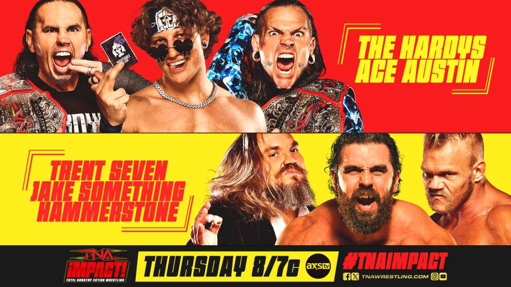 After his shocking betrayal of Speedball Mike Bailey, Trent Seven teams up with Hammerstone and Jake Something to take on The Hardys and Ace Austin in an explosive six-man tag match! Last week, Trent’s squad delivered a brutal ambush—can The Hardys and Ace Austin get their revenge? Find out at 8/7c on TNA+ and AXS TV!