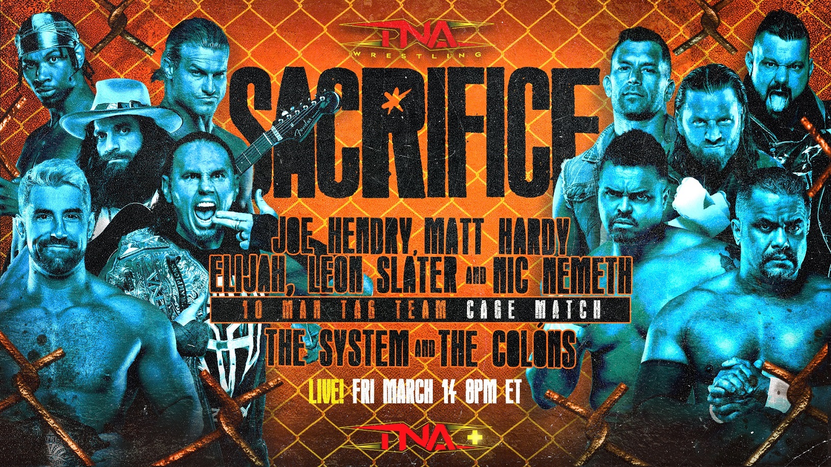 Recently on iMPACT!, Elijah made his shocking debut, joining forces with TNA World Champion Joe Hendry in a winning effort over The Colóns, who arrived on the scene the very same night. One week later, battle lines were drawn when The Colóns fought alongside The System, as they looked to deliver a post-match assault to the reigning TNA World Tag Team Champions, The Hardys, and NXT Champion Oba Femi – but there to even the odds were Hendry and Elijah. After Director of Authority Santino Marella announced a huge 10-Man Tag Team match for Sacrifice, Joe Hendry and Matt Hardy recruited Elijah to join their team. In a digital exclusive video, Nic Nemeth – who will be returning from suspension – and Leon Slater filled the final two spots. And if it wasn’t big enough, Marella made the blockbuster announcement that this 10-Man Tag, pitting Joe Hendry, Matt Hardy, Elijah, Nic Nemeth and Leon Slater against The System and The Colóns, will take place inside of a Steel Cage! Don’t miss first Cage match in TNA since 2019!