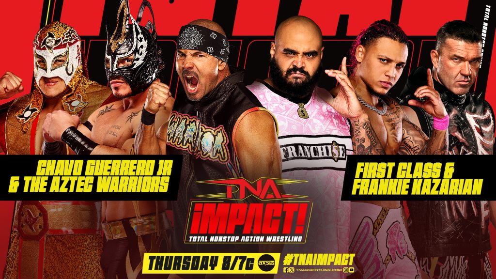 After an intense face-off on the FIR$T CLA$$ Penthou$e, Chavo Guerrero Jr. returns to action alongside the Aztec Warriors to face FIR$T CLA$$ and Frankie Kazarian in six-man tag action on TNA iMPACT! Thursday at 8/7c on AXS TV, Sportsnet 360 and TNA+!