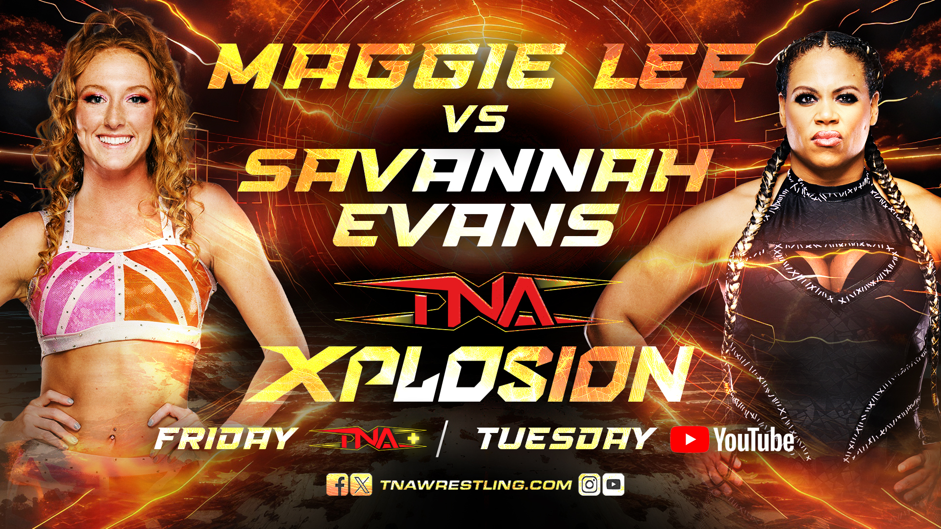 .@justmaggielee takes on @SavannahEvansNV in this week’s #TNAXplosion exclusive match, while @TheEddieEdwards sits down with @MeanGiaMiller on Around The Ring!
