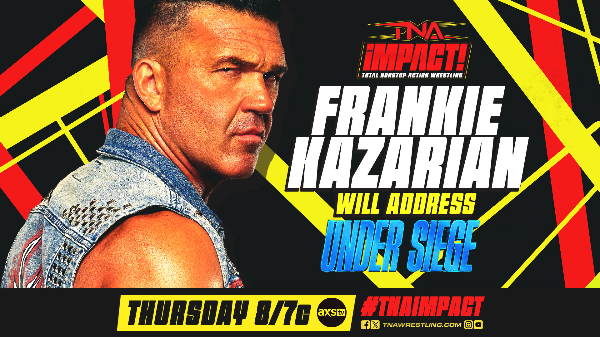 Fresh off his victory alongside the The Nemeths over Joe Hendry & The Hardys—thanks to Trick Williams’ interference—“The King of TNA” Frankie Kazarian will address Under Siege, where he will team with Trick to battle Hendry and Elijah in tag team action. Don’t miss what he has to say this Thursday at 8/7c on AXS TV in the US, Sportsnet+ in Canada, and TNA+ worldwide.