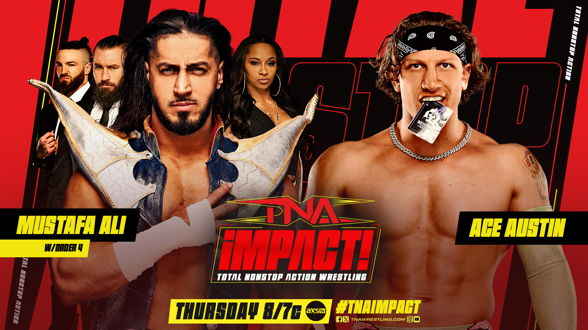 Since his loss to Mike Santana at Rebellion, Mustafa Ali has spiraled out of control. Last week on iMPACT! he attacked The Rascalz before Ace Austin made the save. This Thursday, with Order 4 lurking ringside, Ali looks to shake it off—but Austin is more than ready to settle the score. Tune in to TNA iMPACT! at 8/7c on AXS TV in the US, Sportsnet 360 in Canada and TNA+ worldwide.