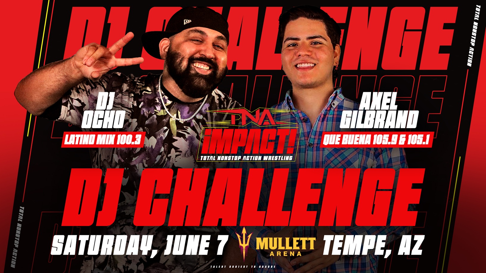 DJ Ocho from Latino Mix 100.3 will manage one TNA star, while DJ Axel Gilbrand from Que Buena 105.9 and 105.1 will manage the opposing wrestler.
