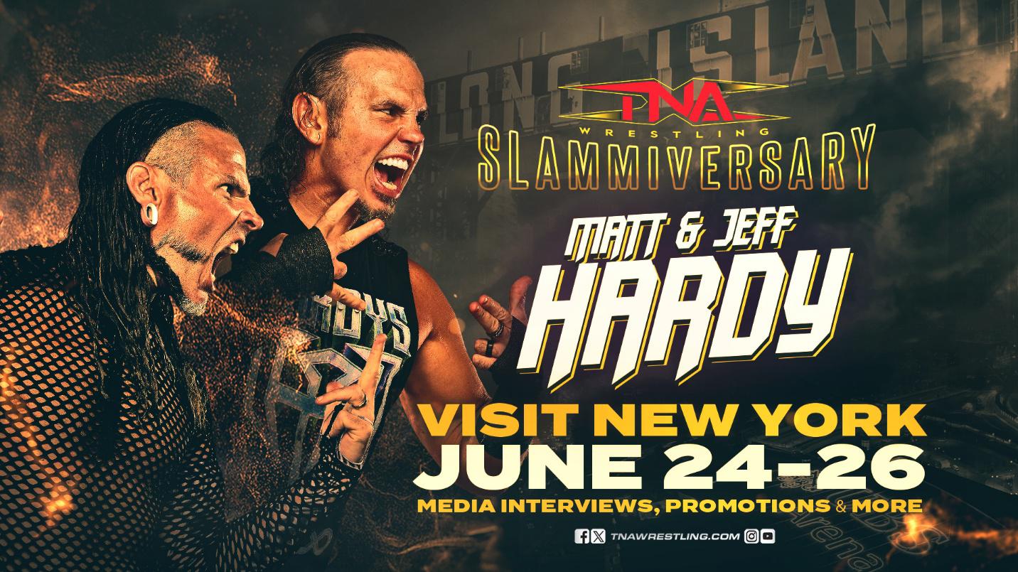 The Hardys are available for media interviews June 24-26 as TNA Wrestling builds toward Slammiversary on Sunday, July 20, originating from UBS Arena in Belmont Park.