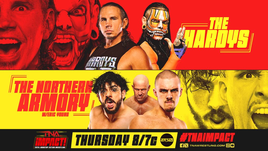The Hardys are back in action this Thursday at 8/7c on AXS TV in the US, Sportsnet 360 in Canada, TNA+ around the world and FREE on YouTube. After Eric Young stole a victory over Sami Callihan last week with the help of The Northern Armory, Matt and Jeff Hardy step up to fight back against the chaos. Will the legendary duo shut down the uprising of Icarus and Williams—or will The Northern Armory continue their surge under Young’s leadership? Find out on TNA iMPACT!