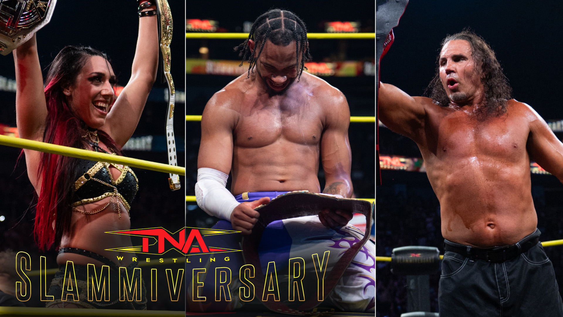 Watch #TNASlammiversary LIVE on TNA+: https://t.co/bUyG5ln9JT pic.twitter.com/Og32BxBFVn
