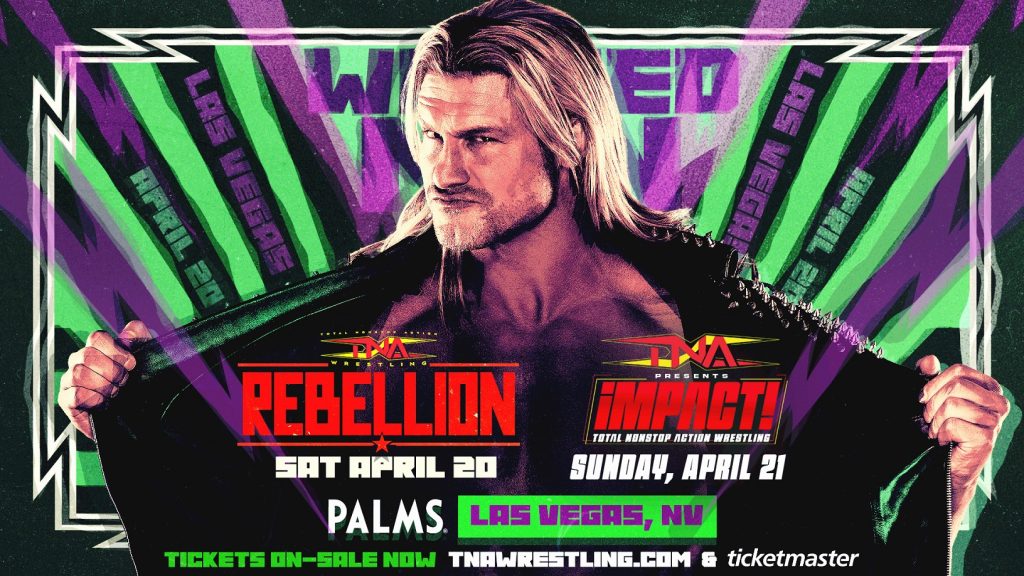 TNA Wrestling presents its spring pay-per-view extravaganza, Rebellion LIVE THIS SATURDAY, April 20th at 8pm ET from the Palms Casino Resort in Las Vegas. Tickets are on-sale now at Ticketmaster.com.