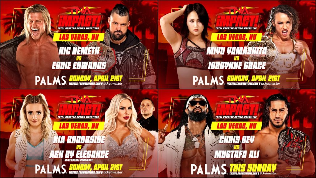 Following Rebellion, the battle rages on! This Sunday, April 21, the television trucks of iMPACT! on AXS TV roll into Las Vegas for a second night of action as TNA Wrestling presents iMPACT! from the Palms Casino Resort.