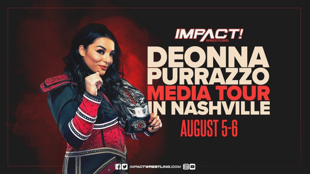Deonna Purrazzo, the reigning and defending Knockouts Champion of IMPACT Wrestling, will be in Nashville on Thursday & Friday, August 5-6, to speak with the local media and more in advance of the mid-August IMPACT Wrestling shows in Nashville.