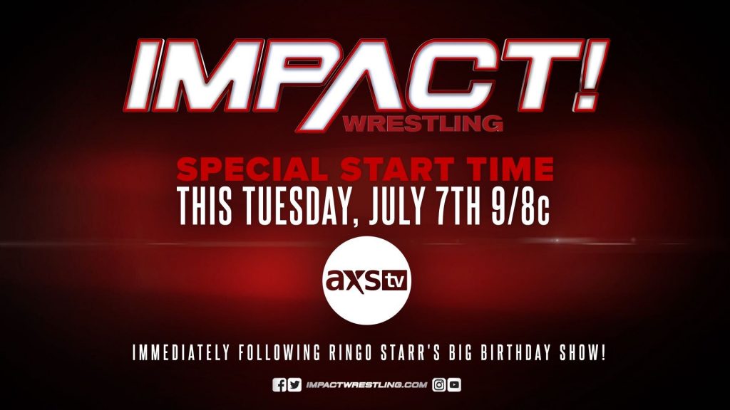 IMPACT! premieres an hour later at 9/8c this Tuesday, July 7 on AXS TV and Twitch.