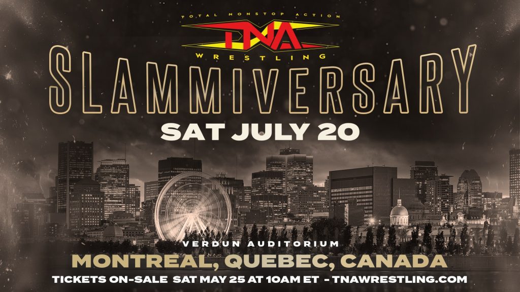 Hear all the latest news about TNA Wrestling days before tickets go on-sale for the annual summer spectacular, Slammiversary, which airs live around the world on pay-per-view on Saturday, July 20. Slammiversary originates from the Verdun Auditorium in Montreal, Quebec, Canada.