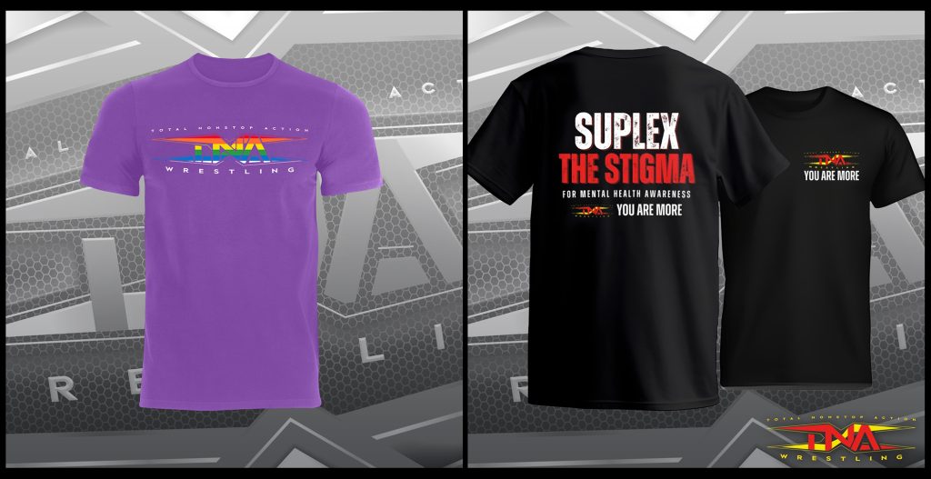 TNA Wrestling is celebrating June’s Pride Month with a charity t-shirt, available in black and purple, featuring the company logo emblazed in the rainbow colors. Another new shirt available at tnamerch.com supports You Are More, a Chicago-based local initiative founded in 2022 by mental health advocates Luis Mendez, Melissa Resendez and Shannon Mulcahy to promote mental health awareness and advocate for suicide prevention.