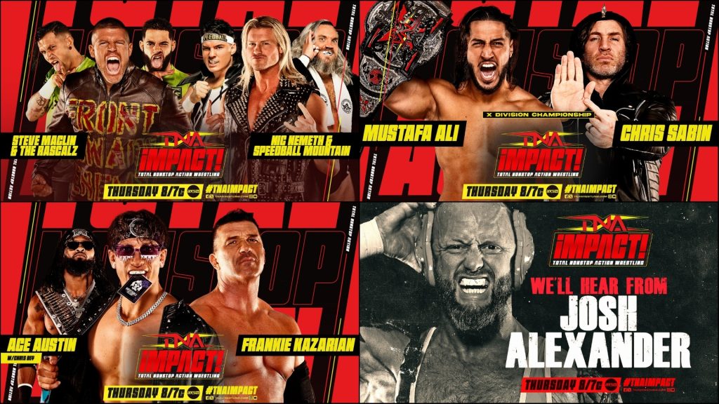 Experience the fallout from Sacrifice as the road to Rebellion begins! Don’t miss an all-new TNA iMPACT! this Thursday at 8/7c on AXS TV and 8:30pm ET on YouTube for Insiders! The war continues as Nic Nemeth and Speedball Mountain face off against Steve Maclin and the Rascalz. Chris Sabin challenges Mustafa Ali in an X-Division Championship rematch. Ace Austin takes on Frankie Kazarian. Plus, we’ll hear from Josh Alexander and so much more!