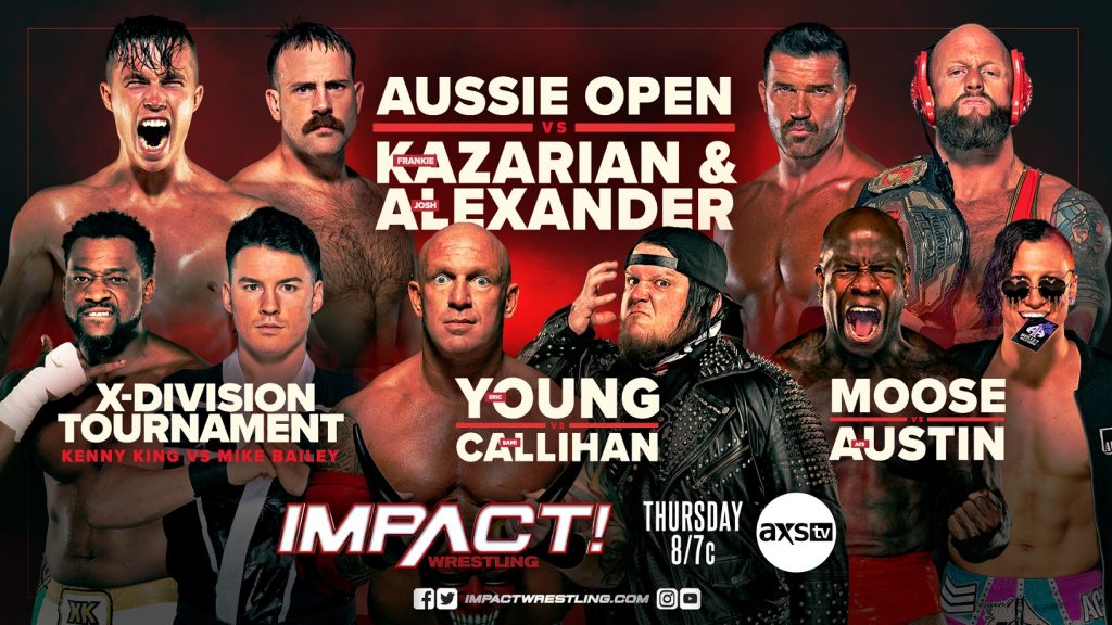 IMPACT Wrestling kicks it into Over Drive LIVE tonight at 8pm ET on IMPACT Plus, YouTube for IMPACT Ultimate Insiders and FITE from Old Forester’s Paristown Hall in Louisville, KY. Frankie Kazarian exercises Option C to challenge Josh Alexander for the IMPACT World Title. Jordynne Grace defends the Knockouts World Title against Masha Slamovich in a Last Knockout Standing match. Plus, Bully Ray battles Moose for the first time ever in a Tables match and so much more!
